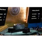 The vote yesterday, in the 193-member General Assembly was 185 countries supporting the condemnation, the United States and Israel opposing it, and Brazil and Ukraine abstaining.