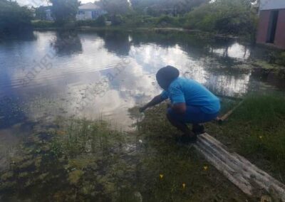 Julienne Mannix, Acting Principal Public Health Inspector says, during the 4-day period, various water catchments including ponds, maul holes, wells, and cisterns were treated with larvicides and guppies to reduce the larvae and pupae count.