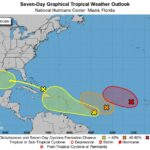 The NHC gives a “medium” chance, 50 percent, of it becoming a tropical depression within 48 hours and a “high” probability, 70 percent, over the next 7 days.