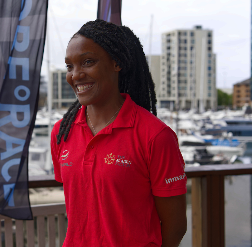 At the Press Conference, Youth crew member Junella King 22 who was selected to sail onboard Maiden from the Antigua Sailing Academy and team manager Marie-Claude Heys explained Maiden’s mission to empower young girls.