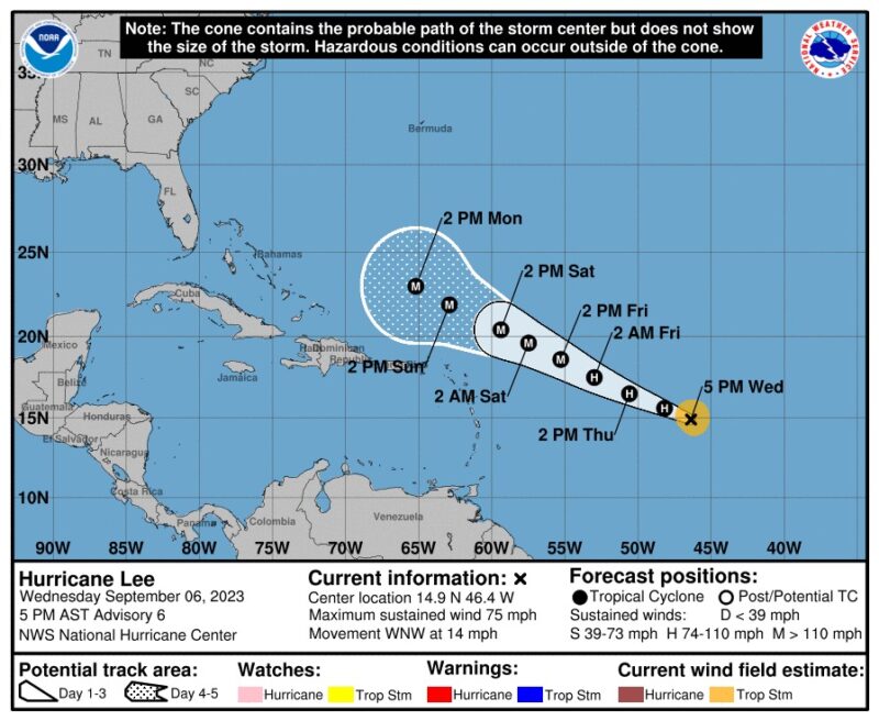 Lee strengthens into a Hurricane, likely to become extremely dangerous