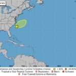 According to the NHC’s 8 am update, the area of low pressure in the Southwestern Atlantic Ocean is showing signs of organization, with thunderstorms and showers.