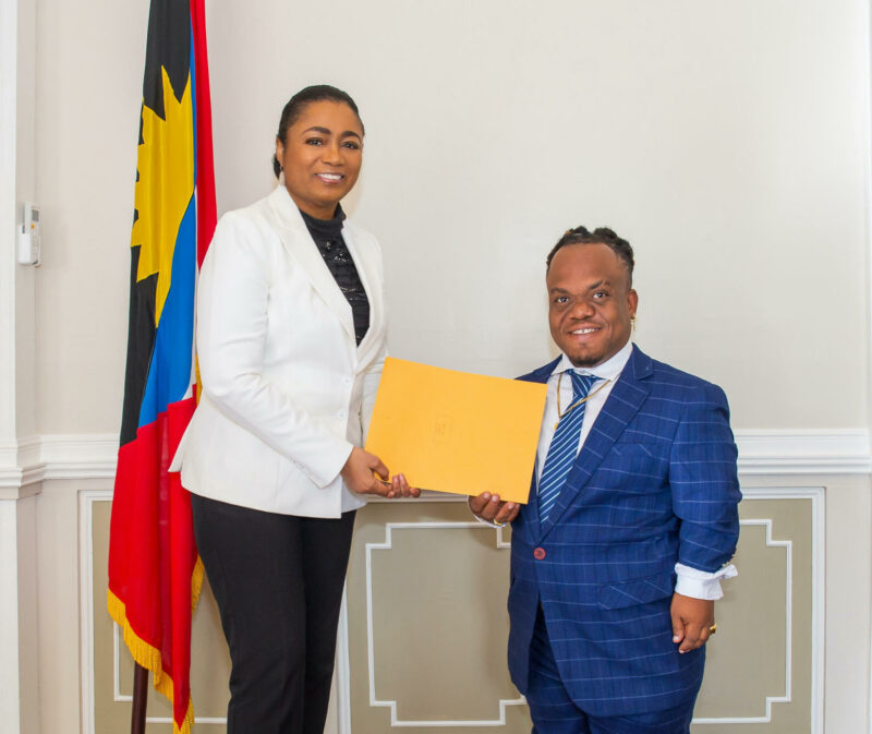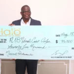 Juante Kirby was presented with an all-inclusive weekend for two at Carlisle Bay Resort by Her Excellency Lady Williams on behalf of the Halo Foundation.