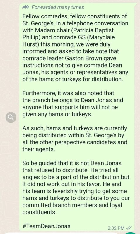 Meanwhile, other Antigua and Barbuda Labour Party members have been distributing hams and turkeys in St. George’s constituency.