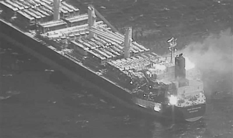 The ship was abandoned and was seen drifting with a fire on board shortly after the strike by the Iranian-backed Houthis, who maintain they are acting out of support for Palestinians in the war between Israel and Hamas in Gaza.