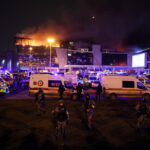 Earlier today and now four days since the terror attack, hundreds gathered at the site of the concert hall, offering condolences to the victims, and laying flowers and stuffed toys, as well as lighting candles next to the memorial.