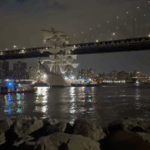 Audio of the first responder call when police decided to block traffic from entering the bridge shortly before its collapse, has been released. In it an officer shouts over the police radio: “Hold all traffic on the Key Bridge; there’s a ship approaching that’s just lost their steering, so until they get that under control, we’ve got to stop all traffic.”
