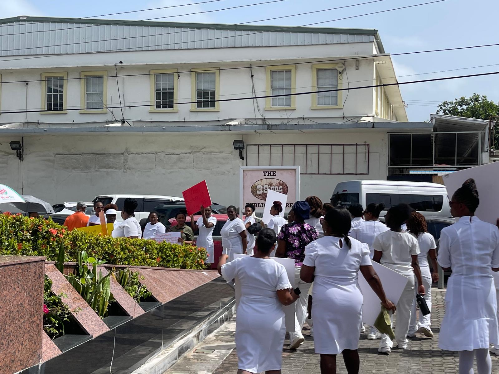 Earlier today, a group of nurses staged a protest outside the Ministry of Health.