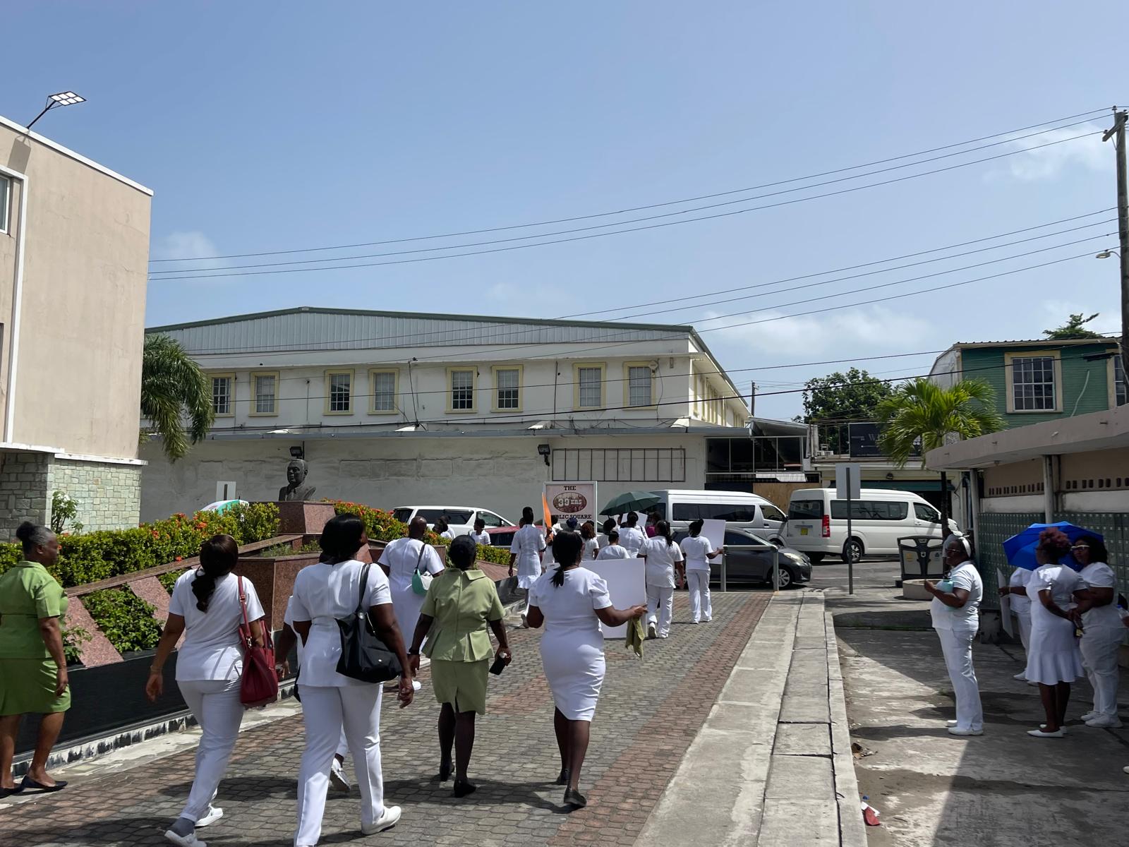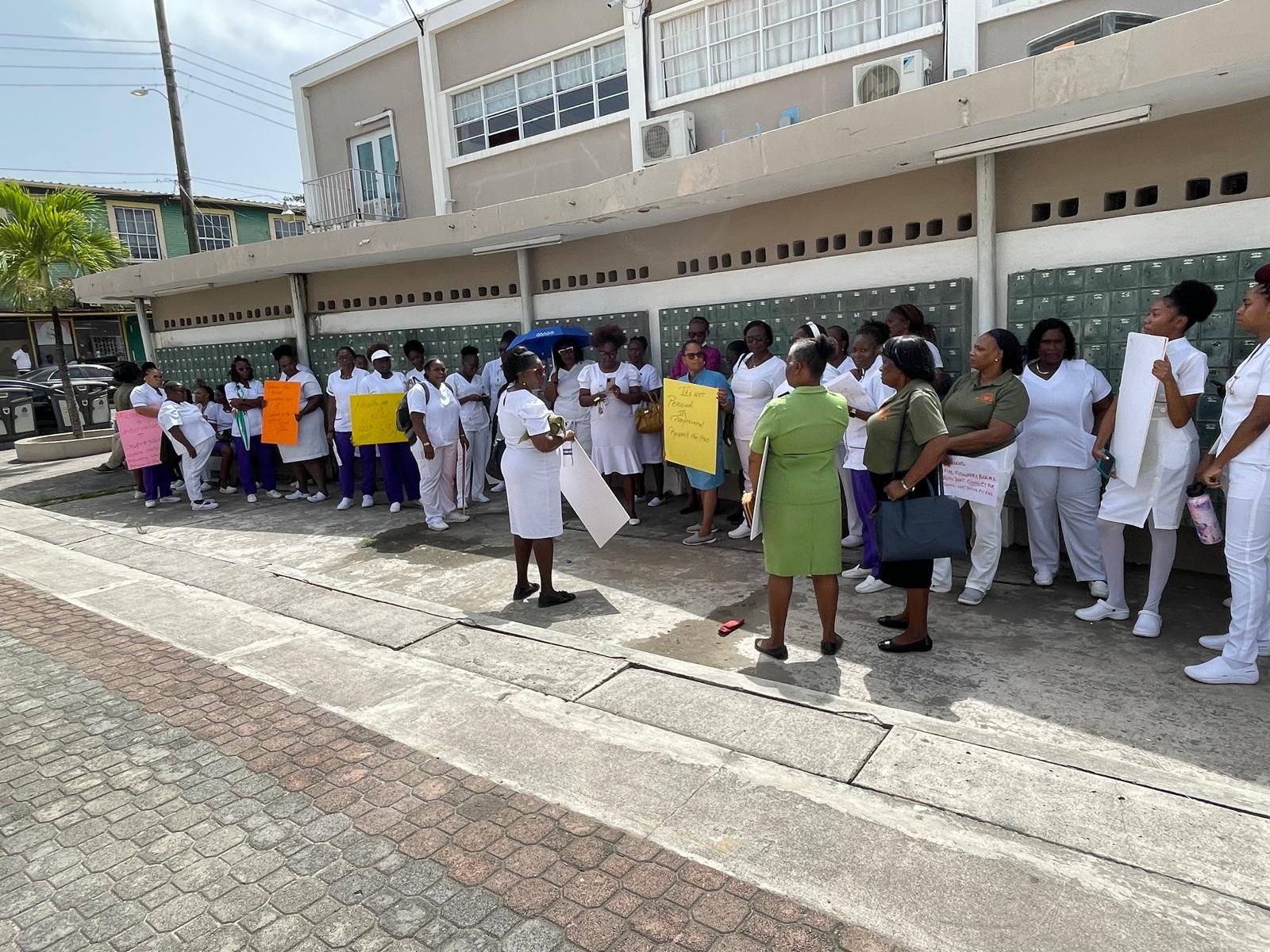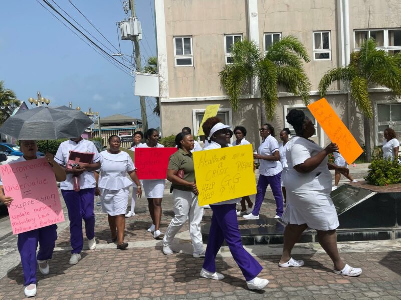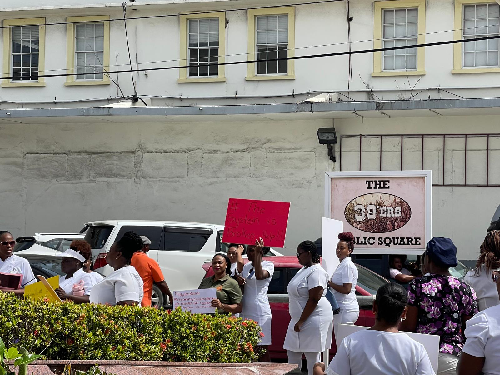 They were protesting against Sir Molwyn Joseph, the Minister of Health’s decision to replace the current Principal Nurse Officer with his own choice to lead the board that oversees midwives in the country.
