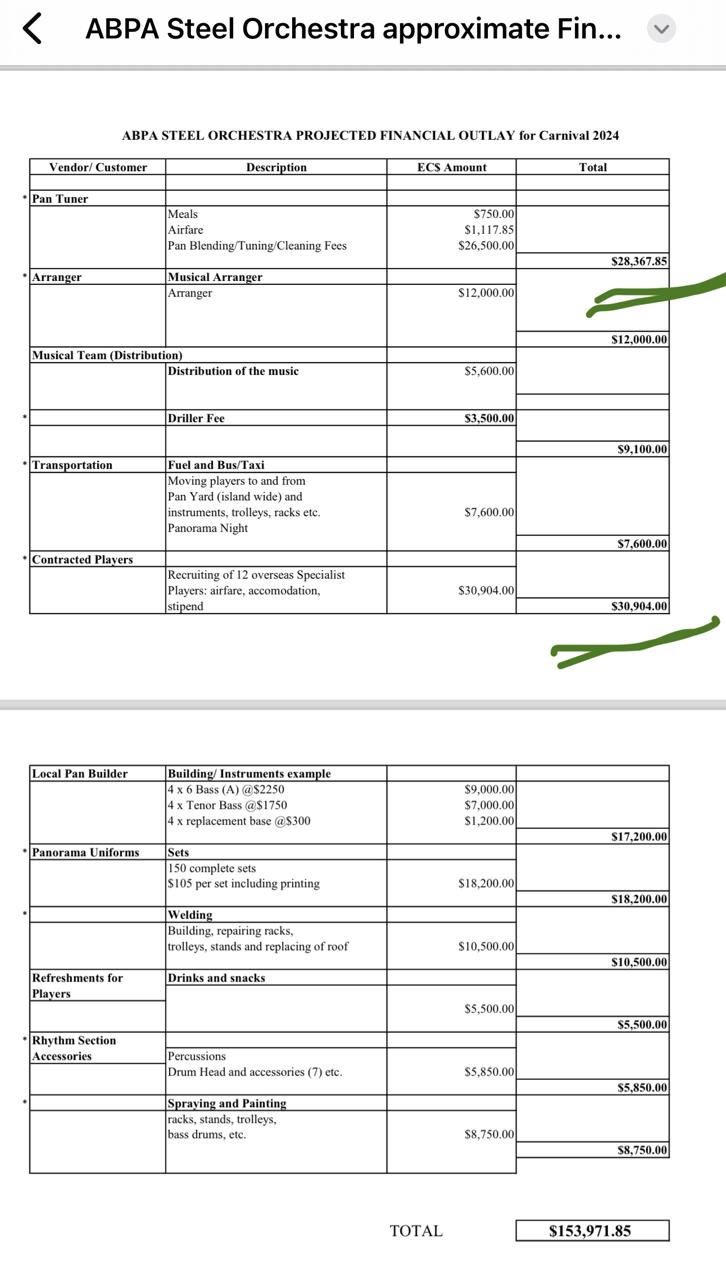 I have recently come across the budget proposed by the Antigua and Barbuda Pan Association for this year’s Panorama competition.