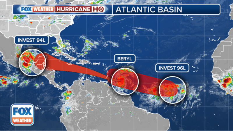 As many focus on the intensification of Hurricane Beryl who is now a Category 4 Hurricane, the NHC has given Invest 96L, which is several hundred miles east of Hurricane Beryl, a high chance of development this week.