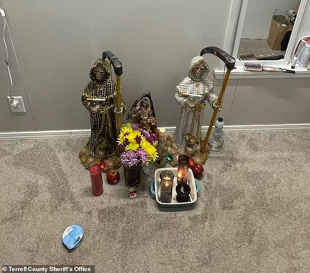 In the Fort Worth stash house apples flowers a bottle of tequila and cigarettes had been left as offerings to Santa Muerte