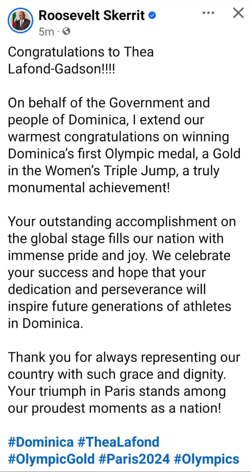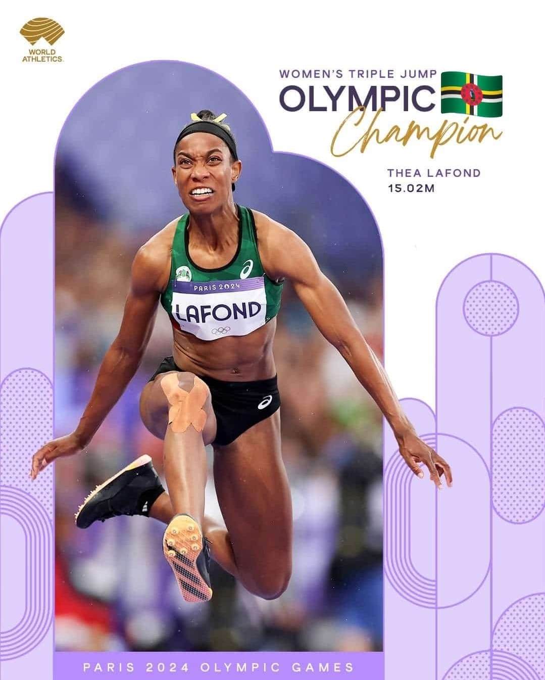HISTORY HAS BEEN MADE!! Thea Lafond-Gadson wins GOLD in the women’s triple jump at the 2024 Olympic Games.