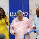 LIAT 20 CEO Hafsah Abdulsalam and St Vincent and the Grenadines Prime Minister Dr Ralph Gonzalves along with LIAT’s Operations Manager Kedus Melkamu in talks during inagural flight ceremony Friday