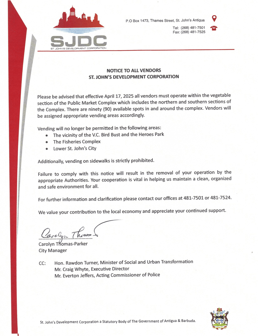This is how we make and keep Antigua clean, orderly, beautiful and inviting. There’s going to be some push back, but stand your ground and enforce this order because Antigua is worth it. Think of what tourists see when they come here because it influences whether they return or recommend our island home to others. Tourism after all is our main industry and vendors will still be able to earn their daily bread so it’s a win all around. Not to mention pedestrians will now be able to safely traverse the sidewalks instead of contending with motor traffic on the roadways.