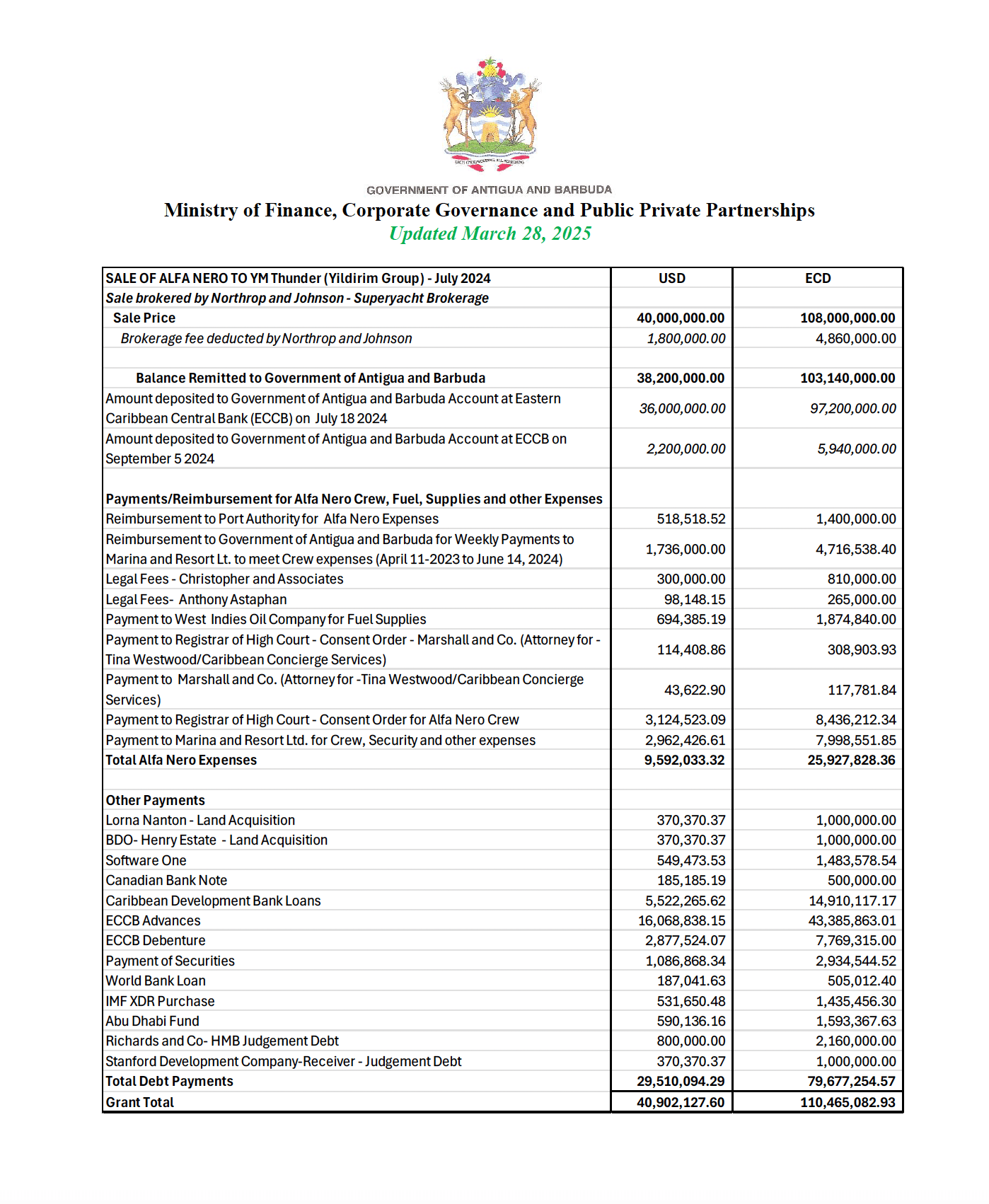 Prime Minister the Honourable Gaston Browne has reiterated his government’s commitment to transparency and accountability in the sale of the superyacht Alfa Nero. Speaking publicly on the matter, he affirmed that if presented with the same circumstances, his administration would take the same course of action without hesitation.