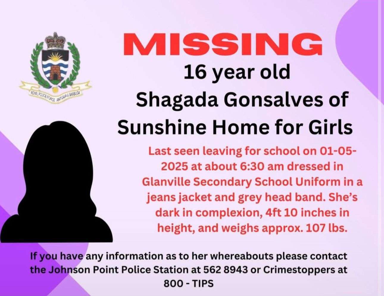 Authorities are seeking the public’s assistance in locating 16-Year-Old Shagada Gonsalves who has been reported missing after she left for school early Thursday morning.