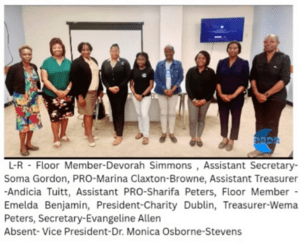 Leading the new team is President Charity Dublin, Vice President Dr. Monica Osborne-Stevens, Secretary Evangeline Allen, Assistant Secretary Soma Gordon, Treasurer Wema Peters, and Assistant Treasurer Andicia Tuitt. The communications portfolio is held by Public Relations Officer Marina Claxton-Browne and Assistant PRO Sharifa Peters. Emelda Benjamin and Devorah Simmons will serve as Floor Members.
