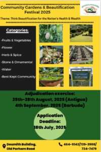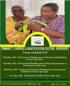 The Community Development and Citizens Engagement Division encourages everyone to participate in these valuable workshops. Whether you are a novice or an experienced gardener, these sessions provide a unique opportunity to build skills, engage with your community, and help create a greener, healthier Antigua and Barbuda.