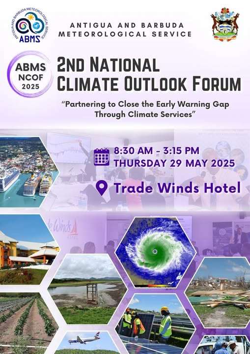 ST. JOHN’S, Antigua, May 27, 2025 – The Antigua and Barbuda Meteorological Service (ABMS), with funding from the Green Climate Fund (GCF) Build Project, will host the Second Annual National Climate Outlook Forum (NCOF) on Thursday, 29 May 2025 at the Trade Winds Hotel in Saint John’s. The forum will be streamed live via the ABMS YouTube channel (@abmetservice), providing broader access to the presentations and discussions.