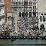 Earlier in the week forty people were held by police after a small protest in St Mark’s Square when a banner was unfurled on the square reading: “If you can rent Venice for your wedding you can pay more tax.”