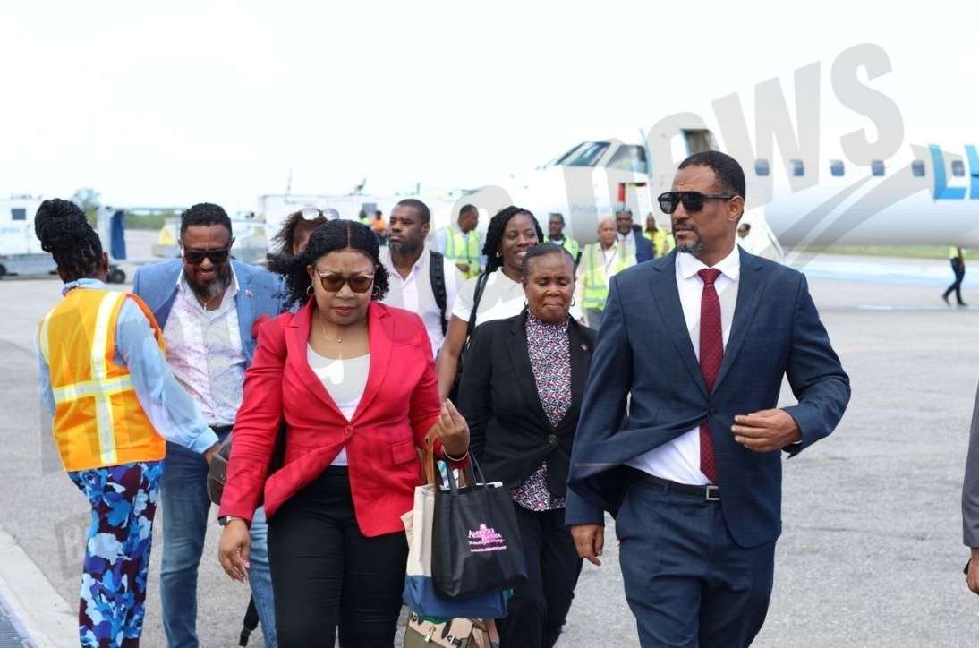 LIAT 2020 and ABHTA officials disembark in Montego Bay for inaugural flight to Jamaica
