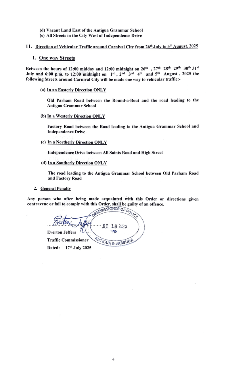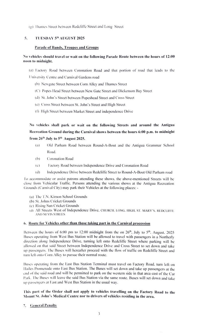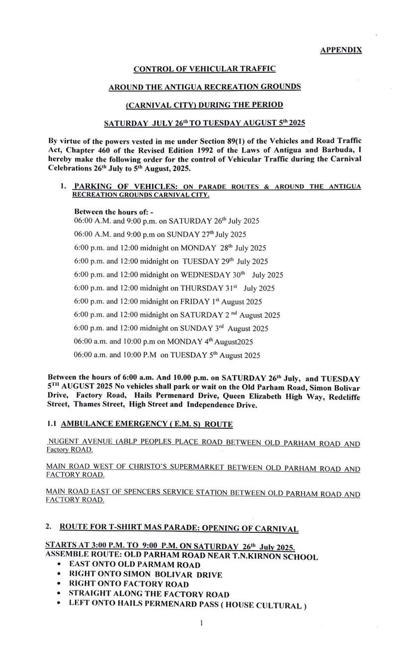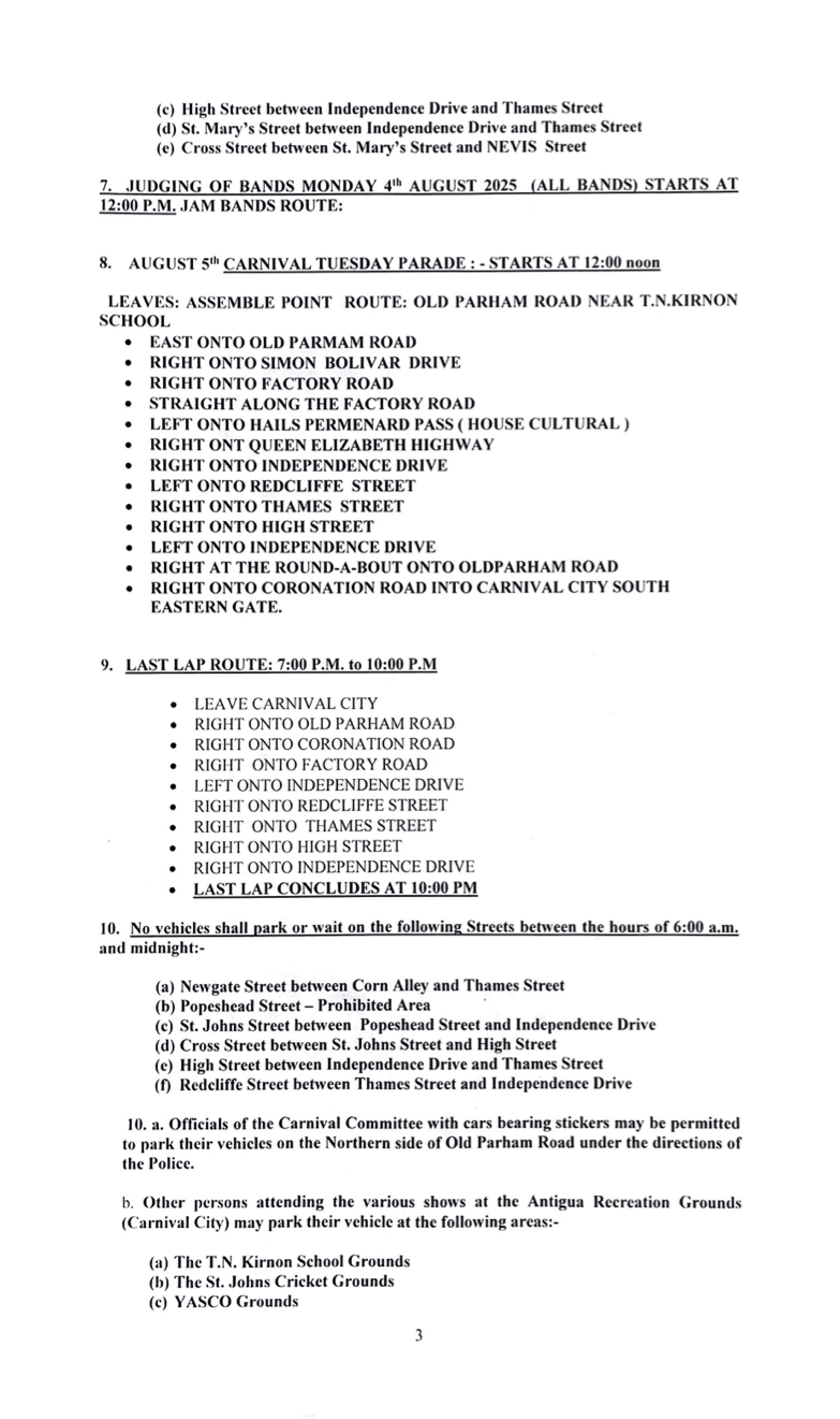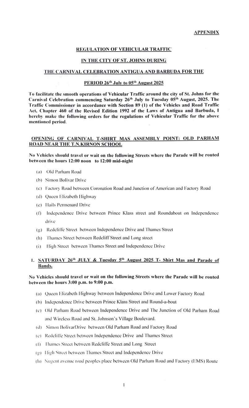 The Royal Police Force of Antigua and Barbuda has announced its official Traffic Management Plan to guide the flow of vehicles in and around St. John’s during the 2025 Carnival season.