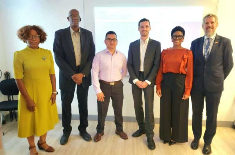 Members of the Chamber and UK Officials (left to right): Mrs. Jacqueline Ferracho-Williams – Director; Martin Cave – Executive Director; Mario Colindres – President; Lorcan O’Brien – Caribbean Trade for Development Advisor, UK Government; Mrs. Tamara Lowe-James – Director; and H.E. John Hamilton – Resident British Commissioner.