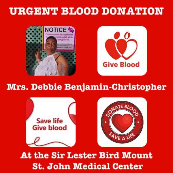 Persons willing to assist are asked to donate at the Blood Bank of the Sir Lester Bird Mount St. John Medical Center, giving their name when donating.