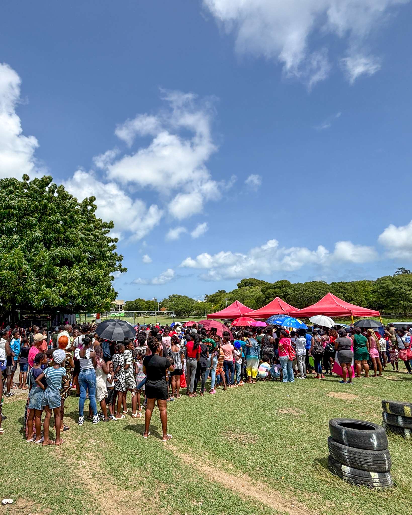 The Rising Sun Grounds were filled today as hundreds of parents and children turned out for the Social Protection Board’s third annual back-to-school drive. Officials reported it was the largest turnout since the programme began.