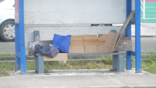 Bus stop on Old Parham Road used as a camp for unsheltered persons (file photo)