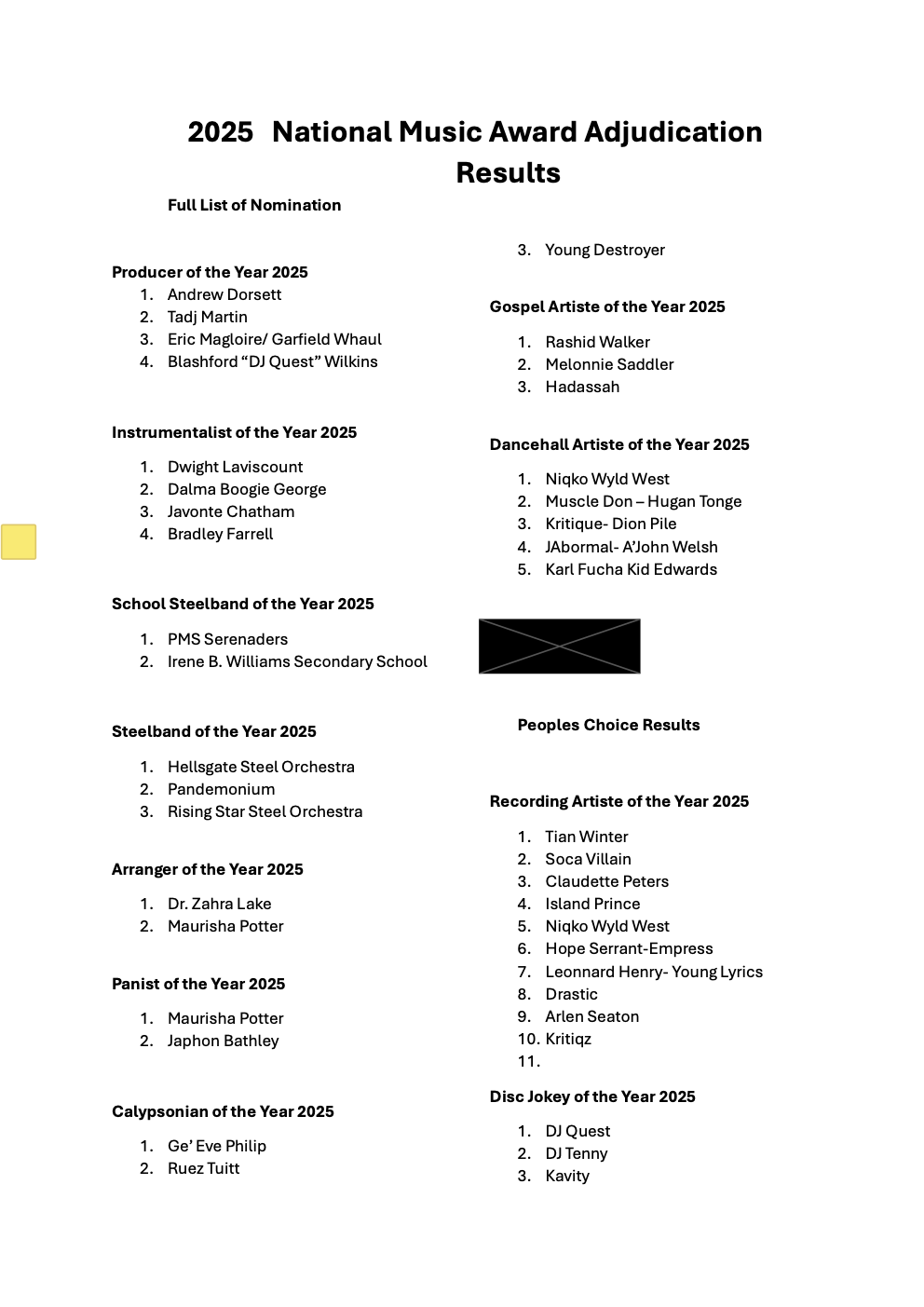 St. John’s, Antigua and Barbuda —The Ministry of Education, Sports and Creative Industries, and the organizers of the Antigua and Barbuda National Music Awards 2025 proudly extend heartfelt congratulations to the winners, special awardees, and nominees who were recognized for their outstanding contributions to the nation’s vibrant music industry.
