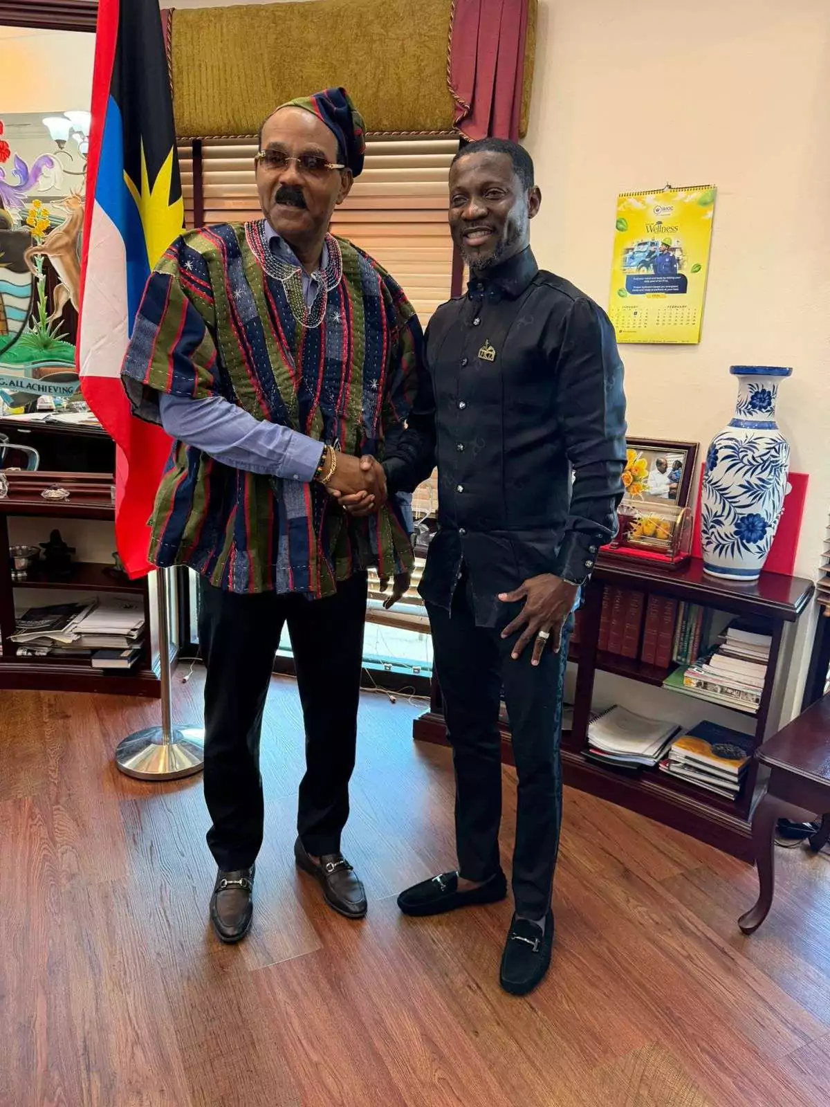 In a symbolic gesture reflecting shared heritage and unity, Dr. Danso also presented Browne with a traditional Ghanaian outfit. The prime minister proudly donned the attire, underscoring his continued commitment to Pan-African ideals and deeper connections between Africa and the Caribbean.