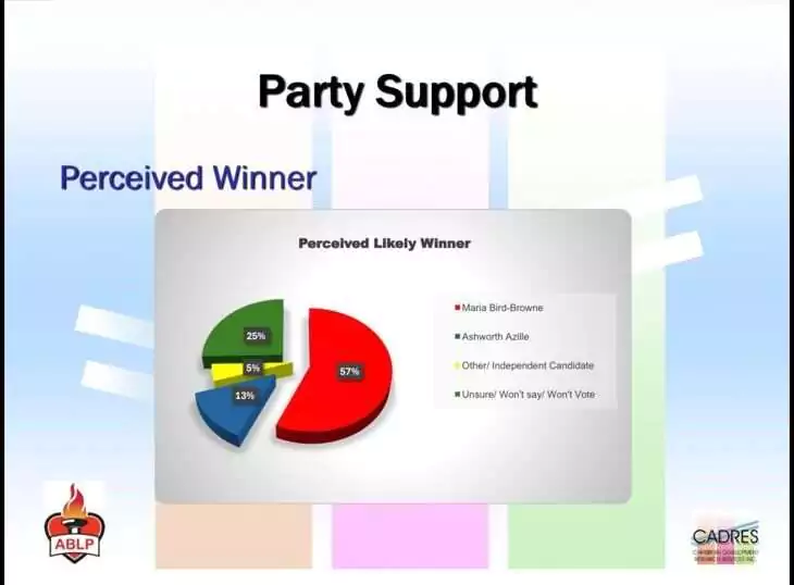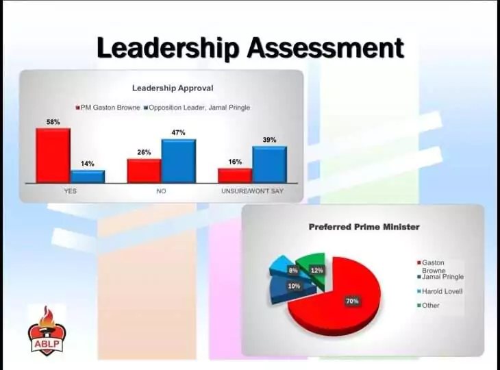 According to the figures shared, Browne commands support from roughly 70 percent of respondents, compared to 10 percent for Opposition Leader Jamale Pringle and 8 percent for political newcomer Harold Lovell.