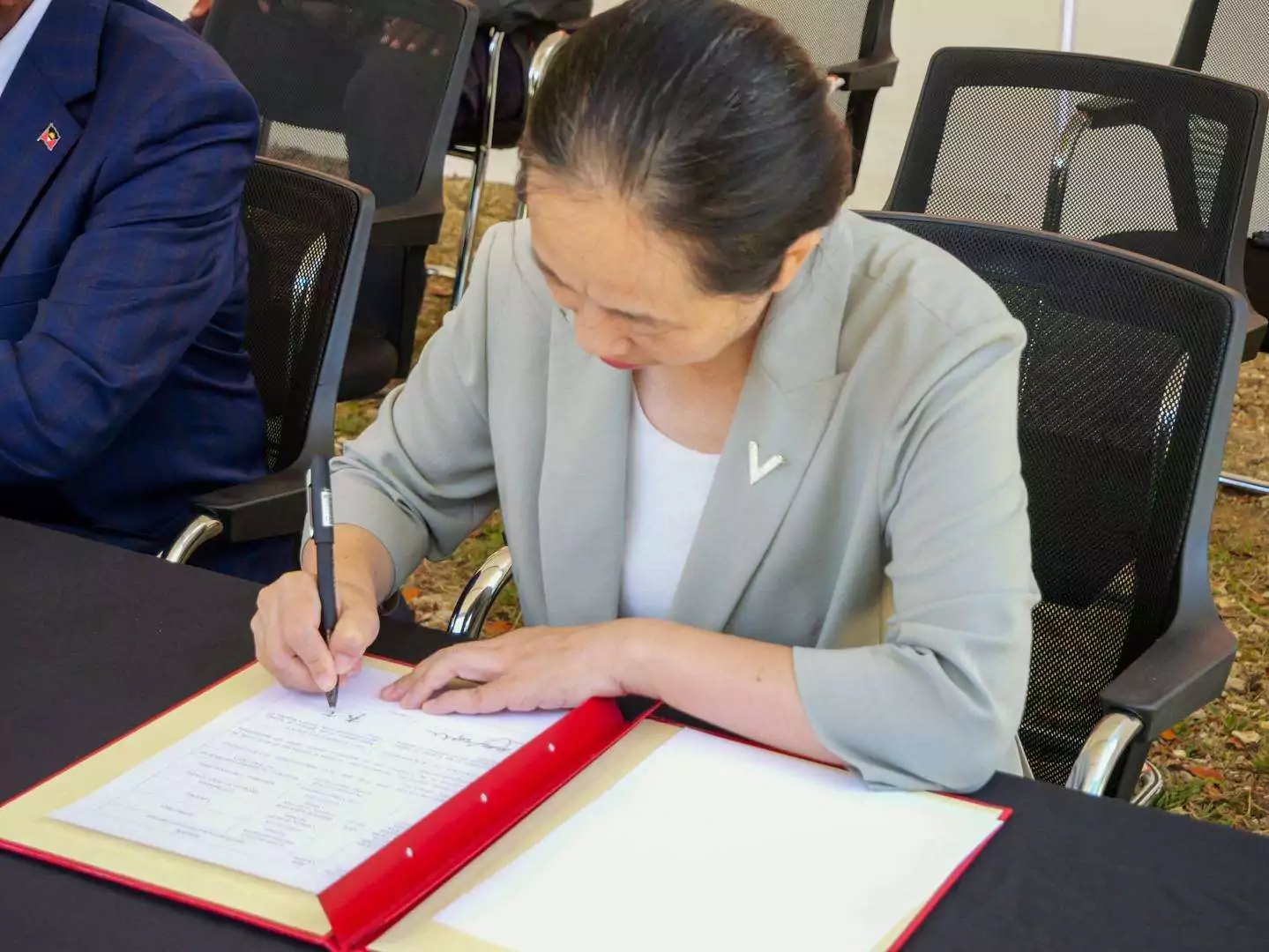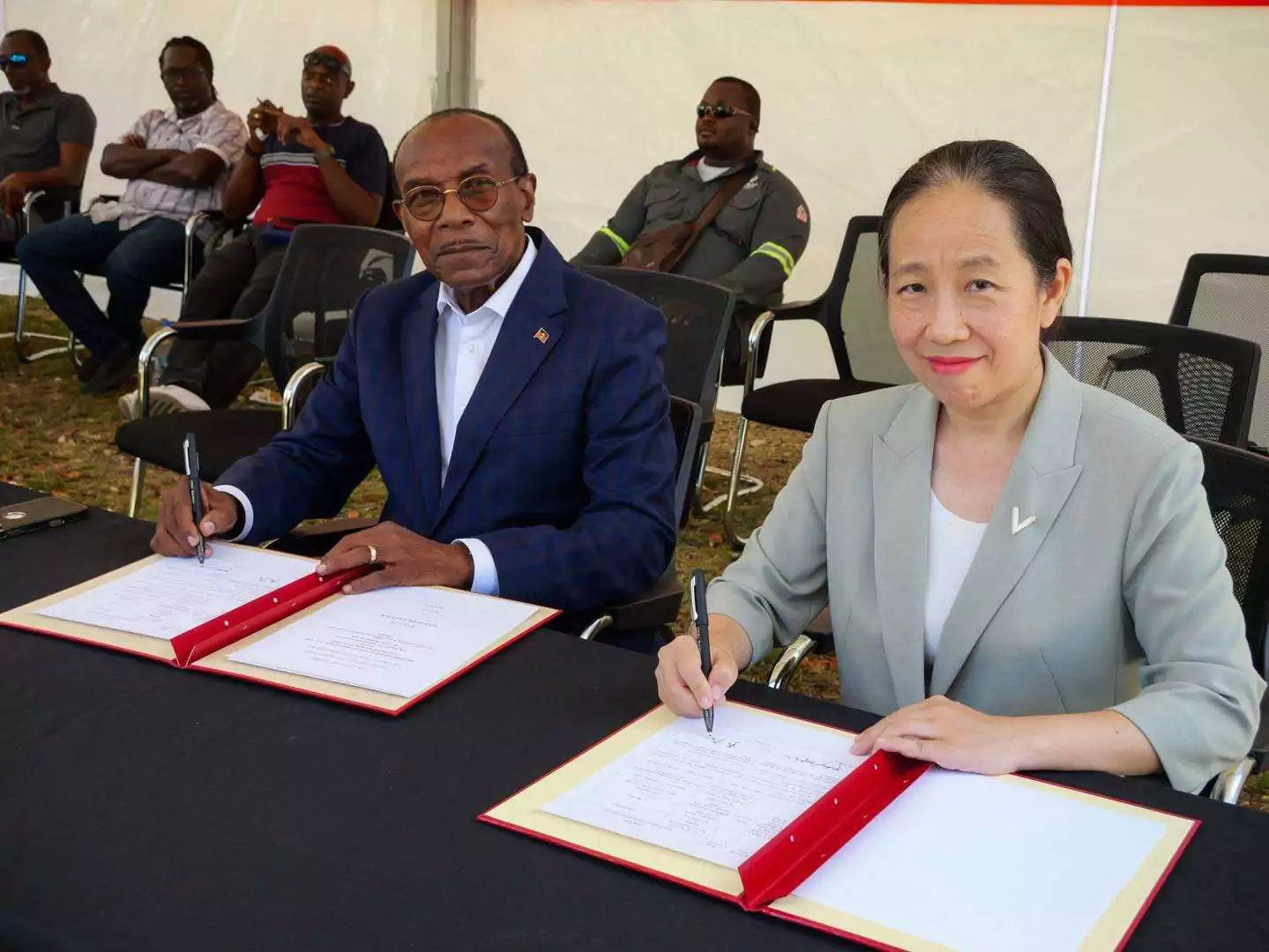 The ceremony concluded with the formal signing of the handover certificate by Ambassador Jiang and Minister Joseph, officially transferring the solar kits to the Government.
